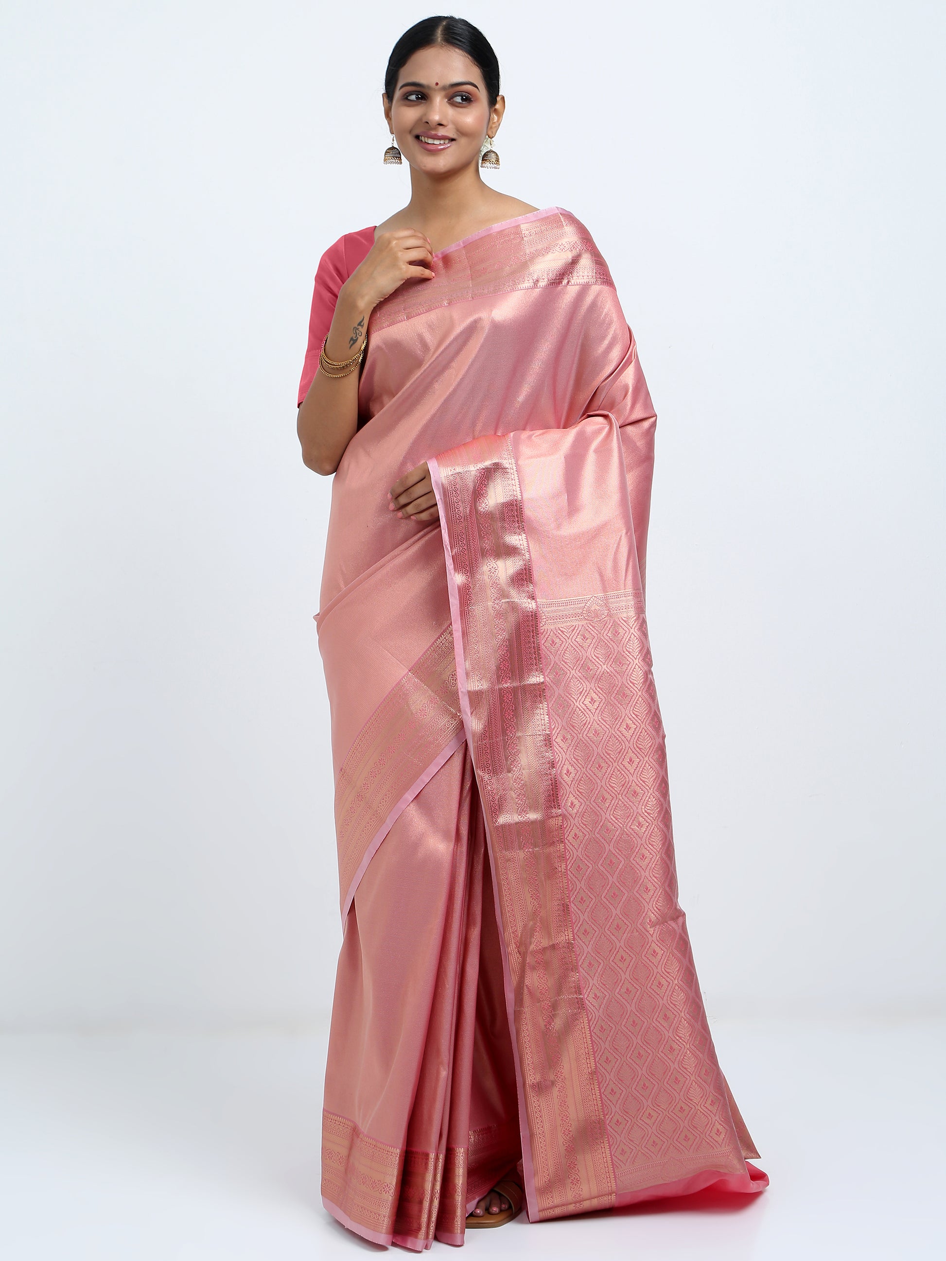 Dusty Rose silk saree with matching unstitched blouse