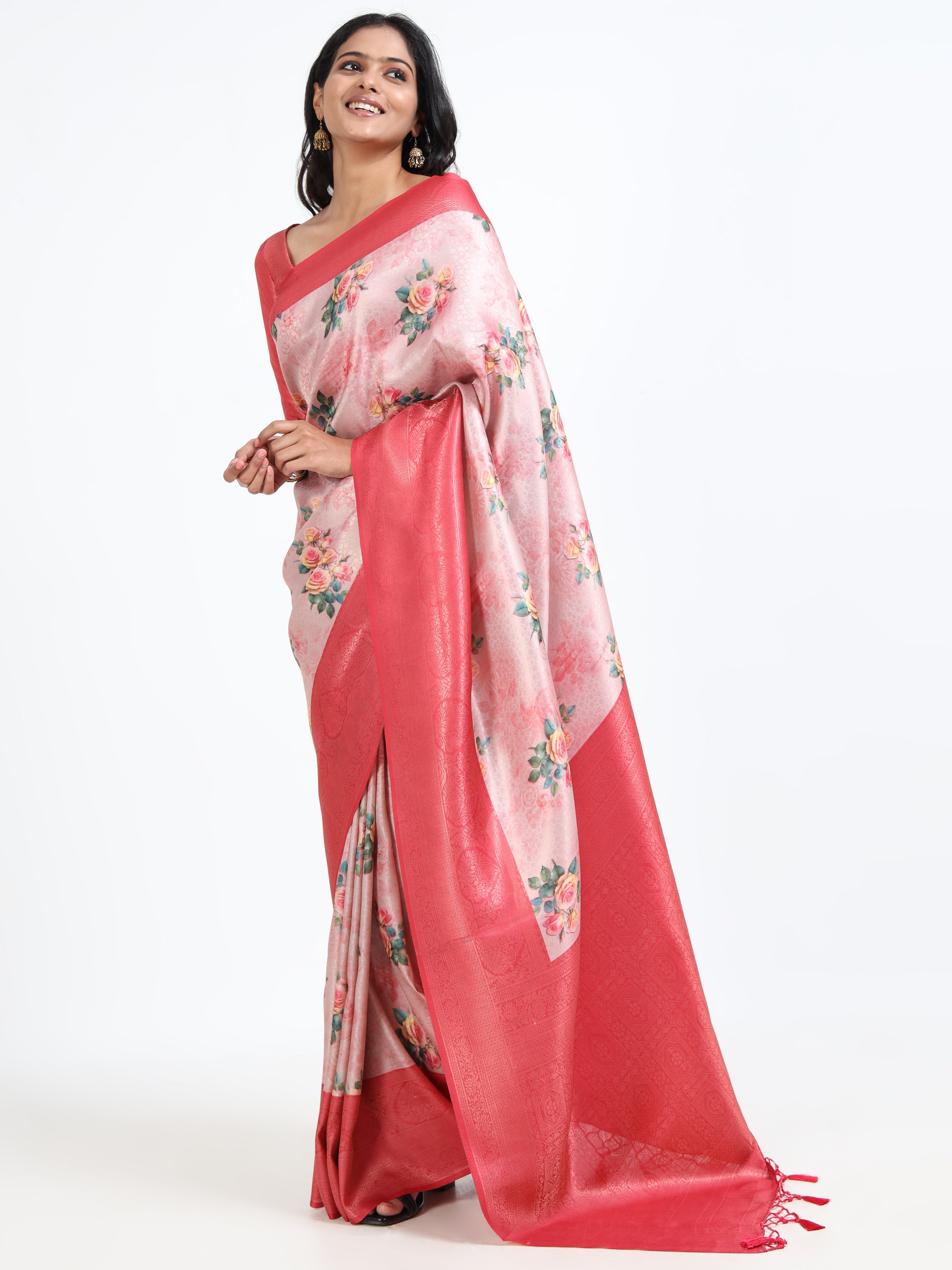 Flamingo Pink silk saree with matching unstitched blouse