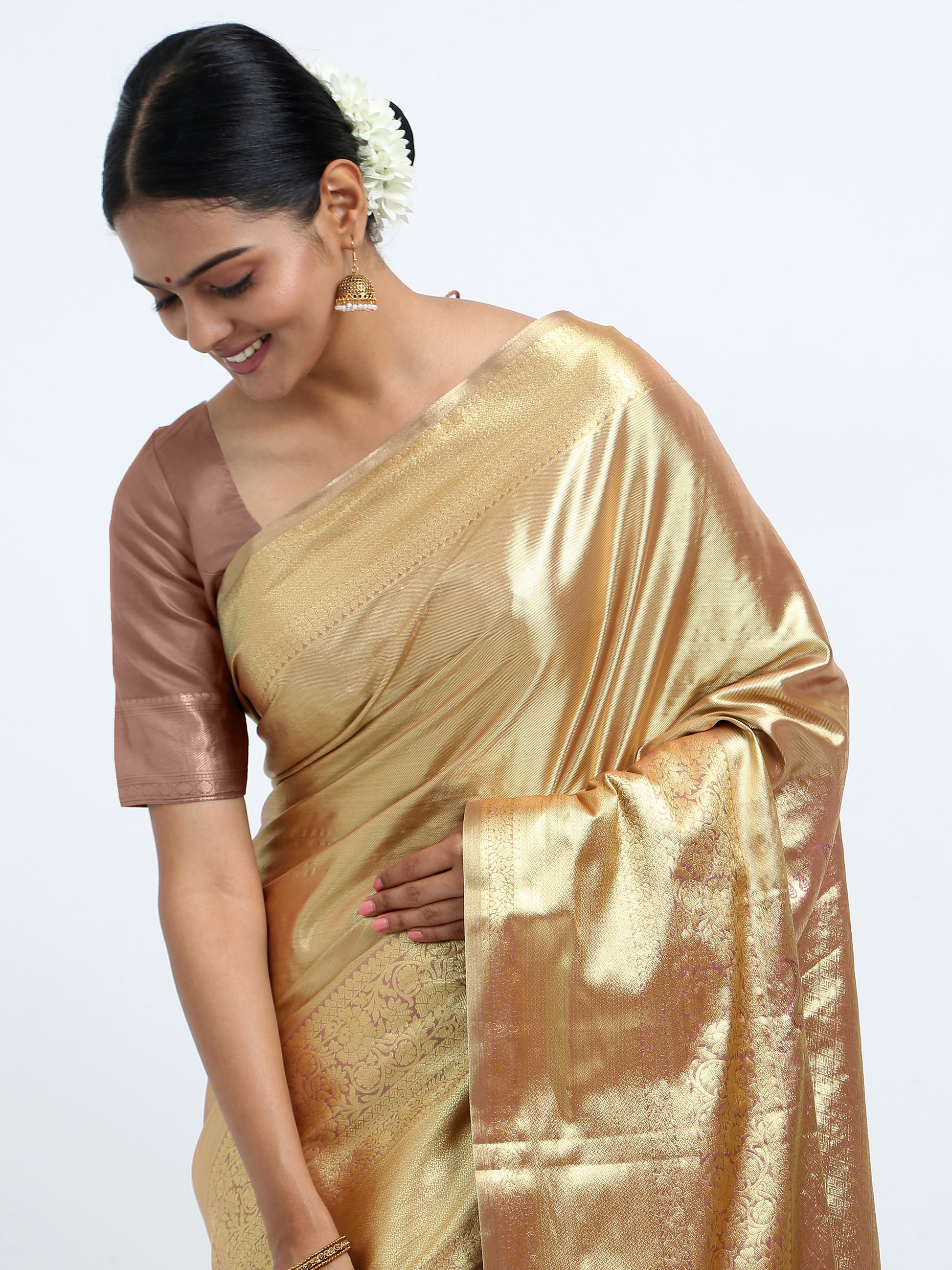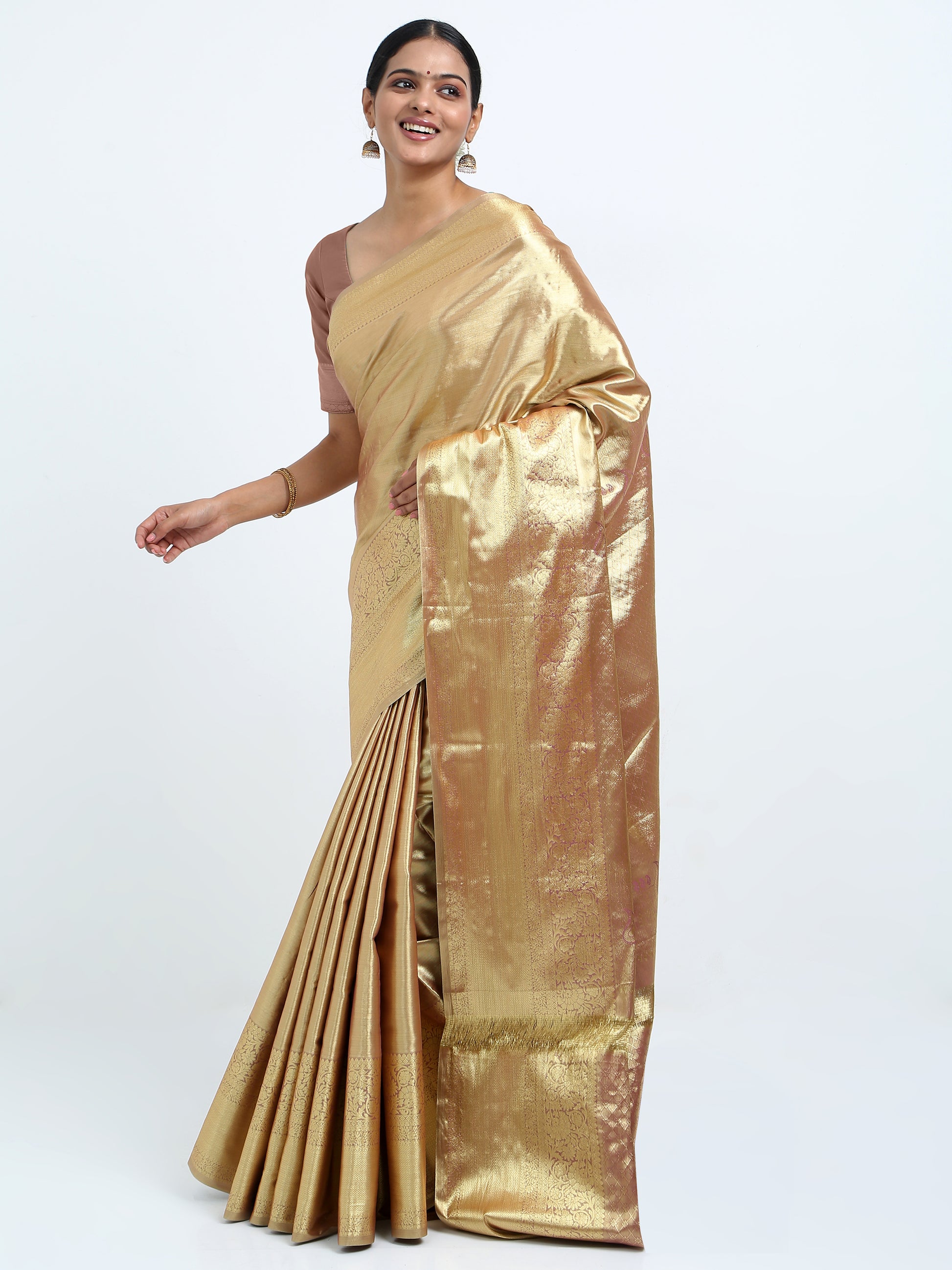 Sandy Brown silk saree with matching unstitched blouse